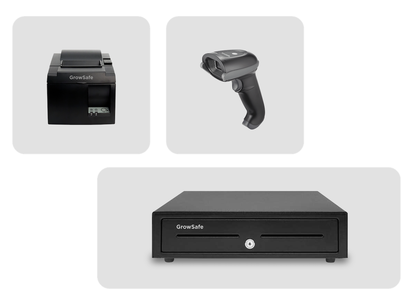 - Barcode scanners, receipt printers, and cash drawers for a full point of sale solution